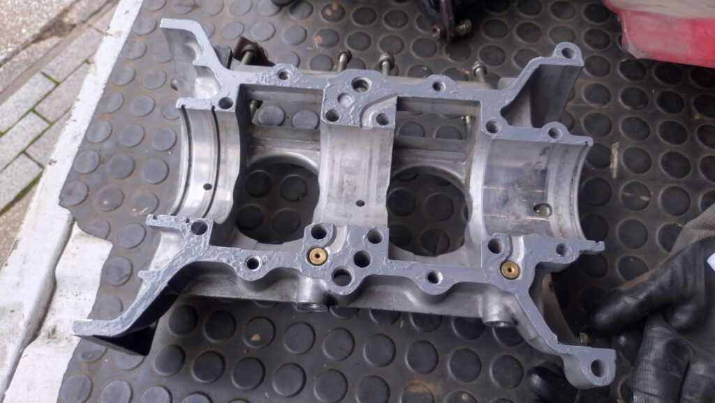 ということで、クランクシャフトをクランクケースに収めてオイルを各所に流し込んでおきます。