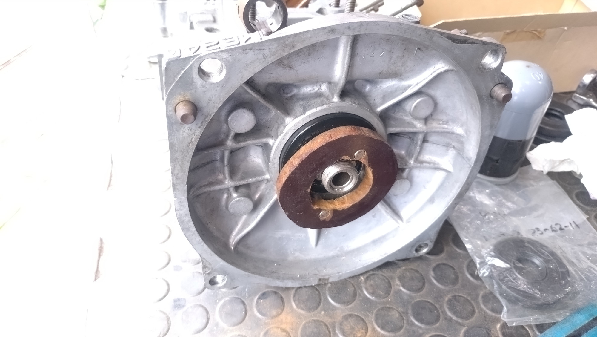 この25-62-11サイズは既に製廃品の殿堂入りをしていて入手不可。代替品は25-62-10で1mmほど薄いタイプが使用できますが圧入量を調整する必要があります。が、もうエンジンの分解整備はしないだろうと、予備で持っていた製廃品を惜しみなく使用します!