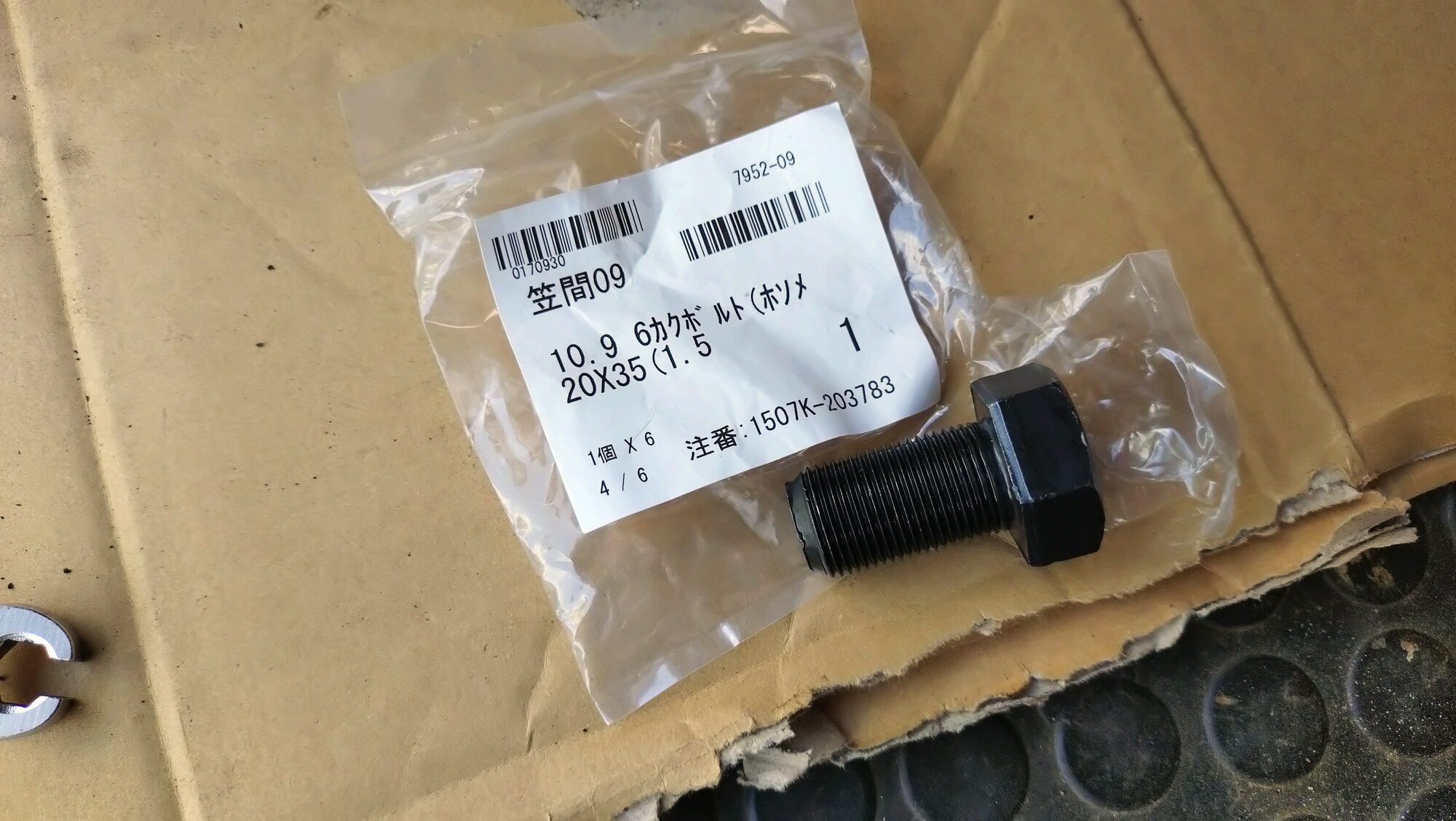 この20Φボルト、通常規格ではネジピッチ2mmですが、細目の1.5mmピッチというやや特殊なタイプ。ホームセンターにはお目にかかれないため、何とかタロウで購入です。