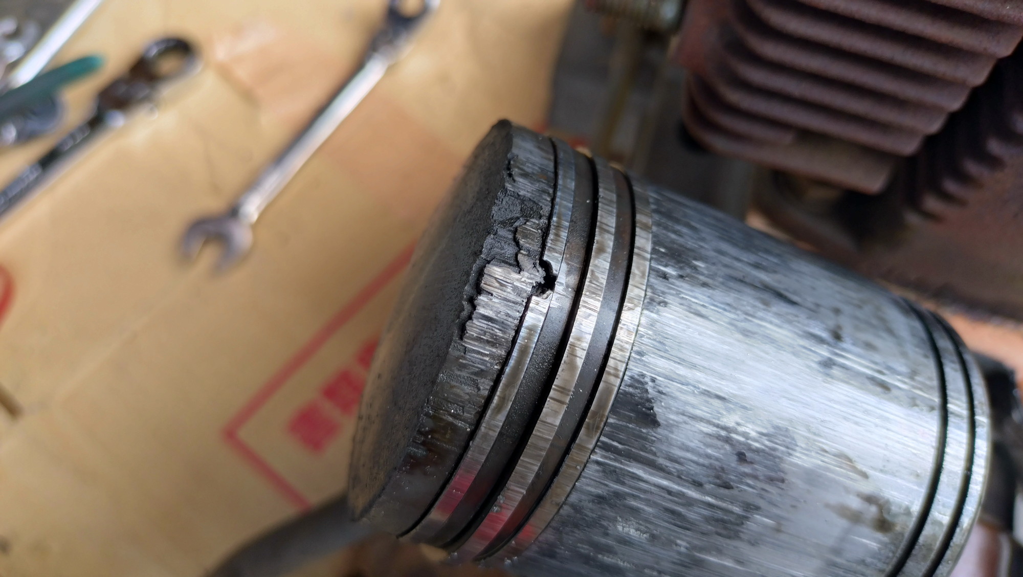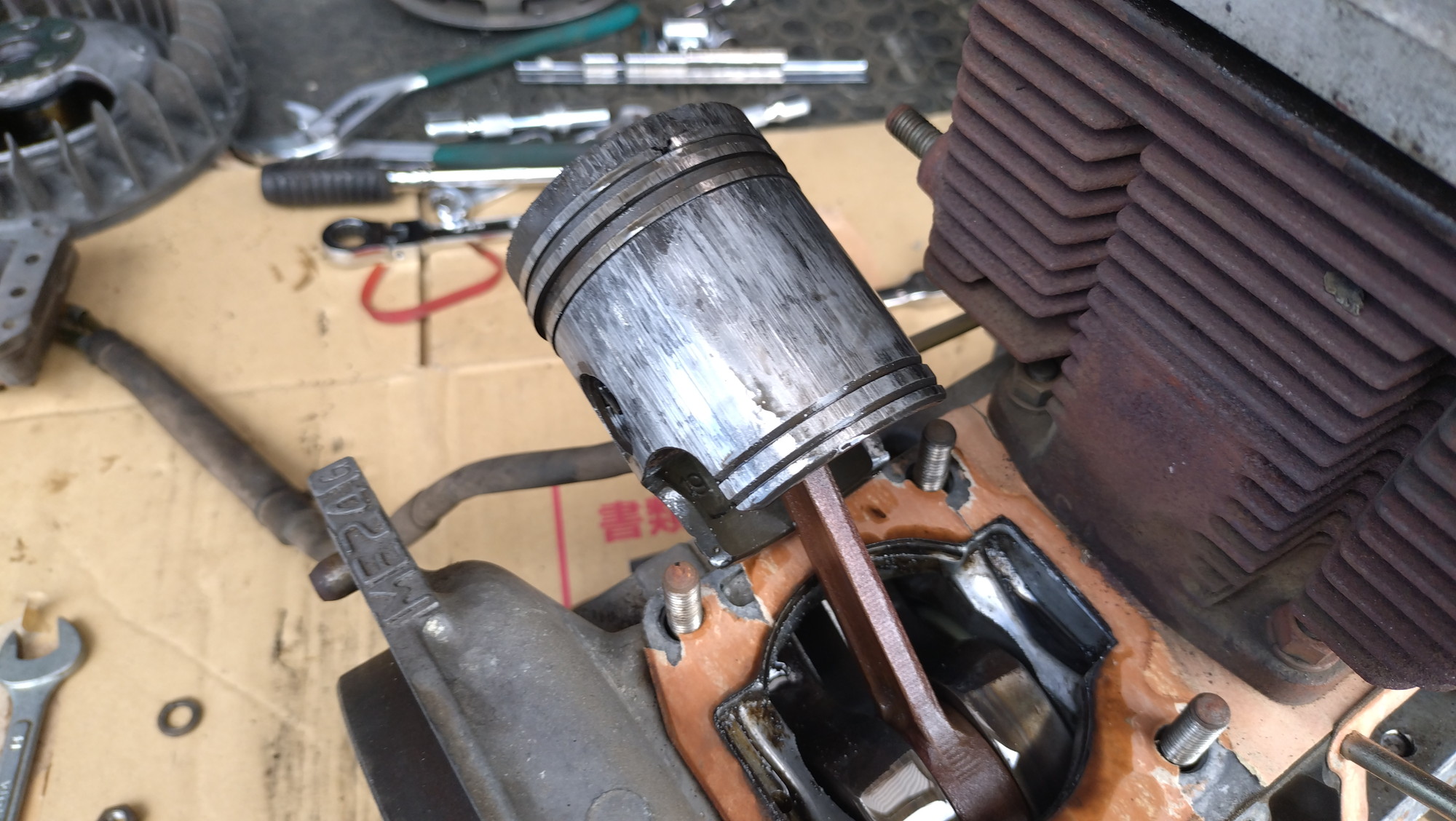シリンダヘッドを取り外してみると、ガリガリに、そしてスジスジに・・・ひどい傷。これでも完全に片肺にならずに回っていたからすごい。異音と吹け上がりの悪さ、パワー不足を除けば、アイドリングは保っているし60km/hは出せていたので。