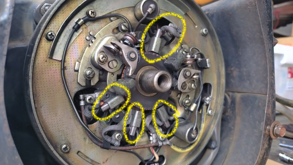 アーマチュアとヨークは予備エンジンから取り外して、焼き付きエンジンのものを使用します。