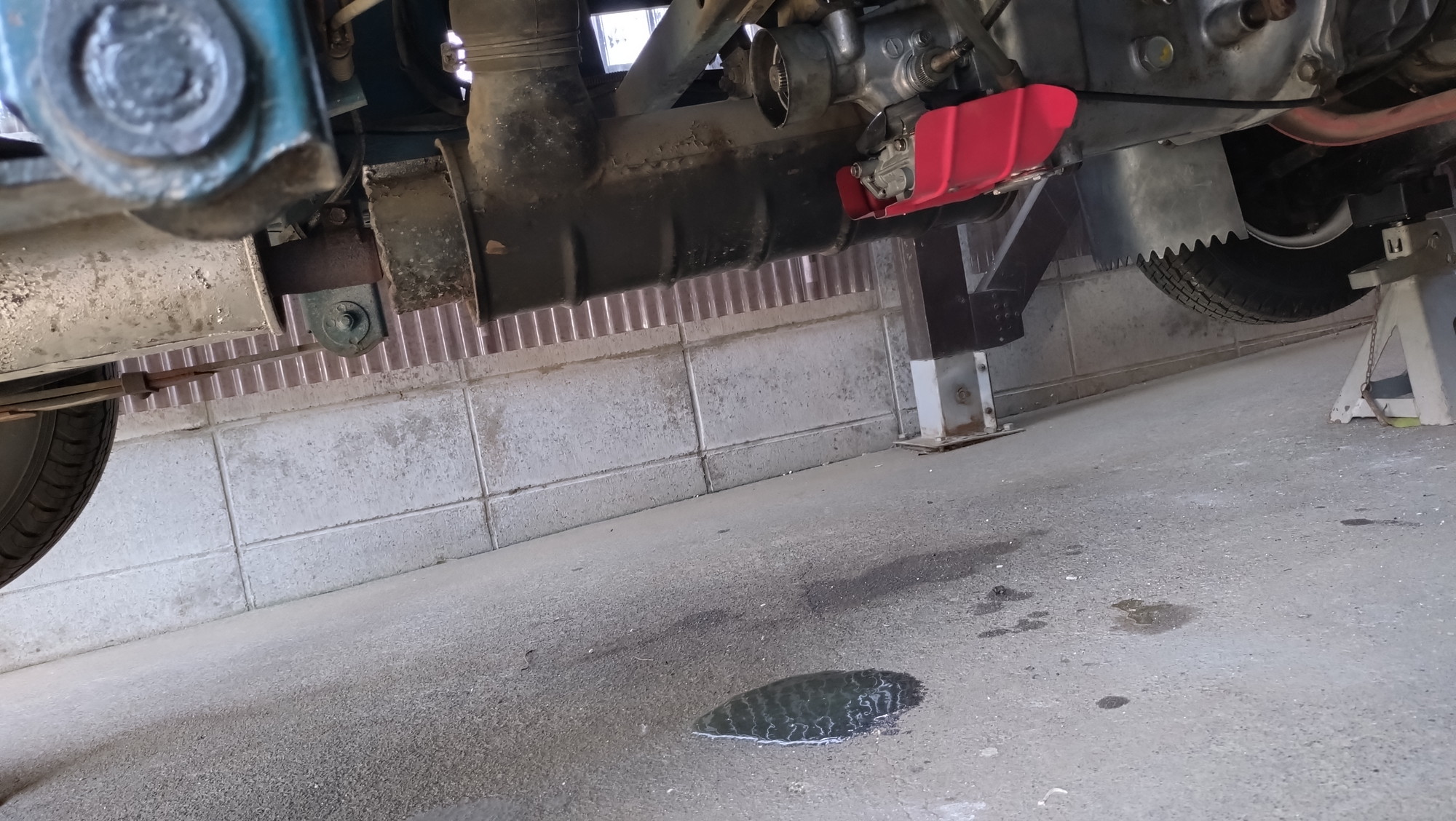 と思ったら、プロペラシャフトを取り付けていなかったのでトランスミッションから漏れていただけでした。焦ったー