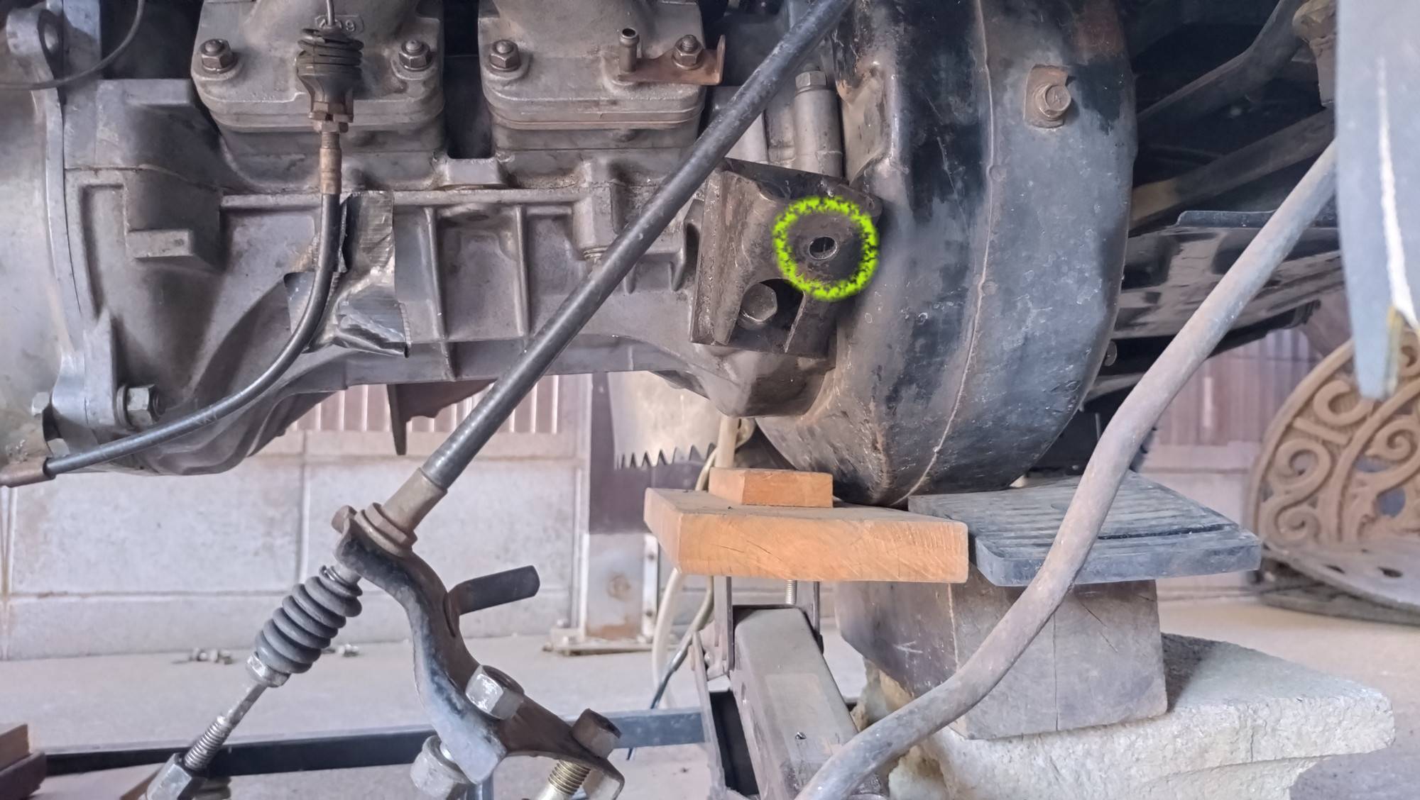 そう!ブラケットが後ろ方向(画像の上側)に対して数cmオフセットしてしまうのです。つまり、エンジン全体がずれて取り付いてしまい、結果としてトランスミッションの位置が合わなくなってしまいます。