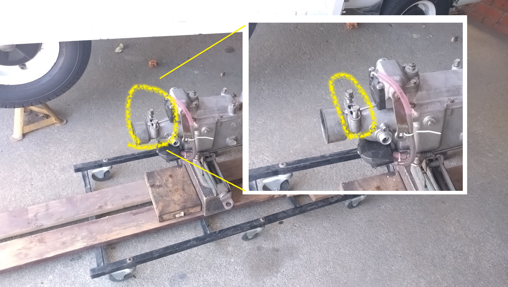 そしてしばらくして原因が判明!エンジンを荷台から下す際にパワーを使い切ってしまい、脳内に糖分が足りてないので気が付くまで時間がかかってしまった・・・