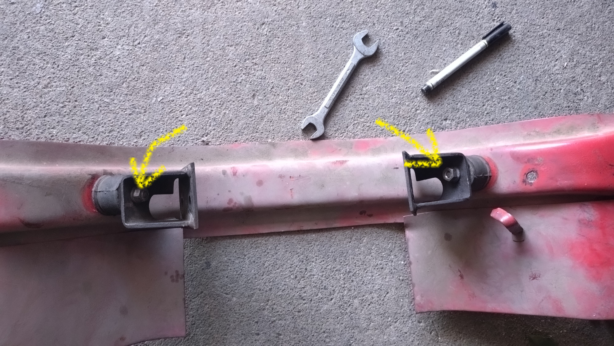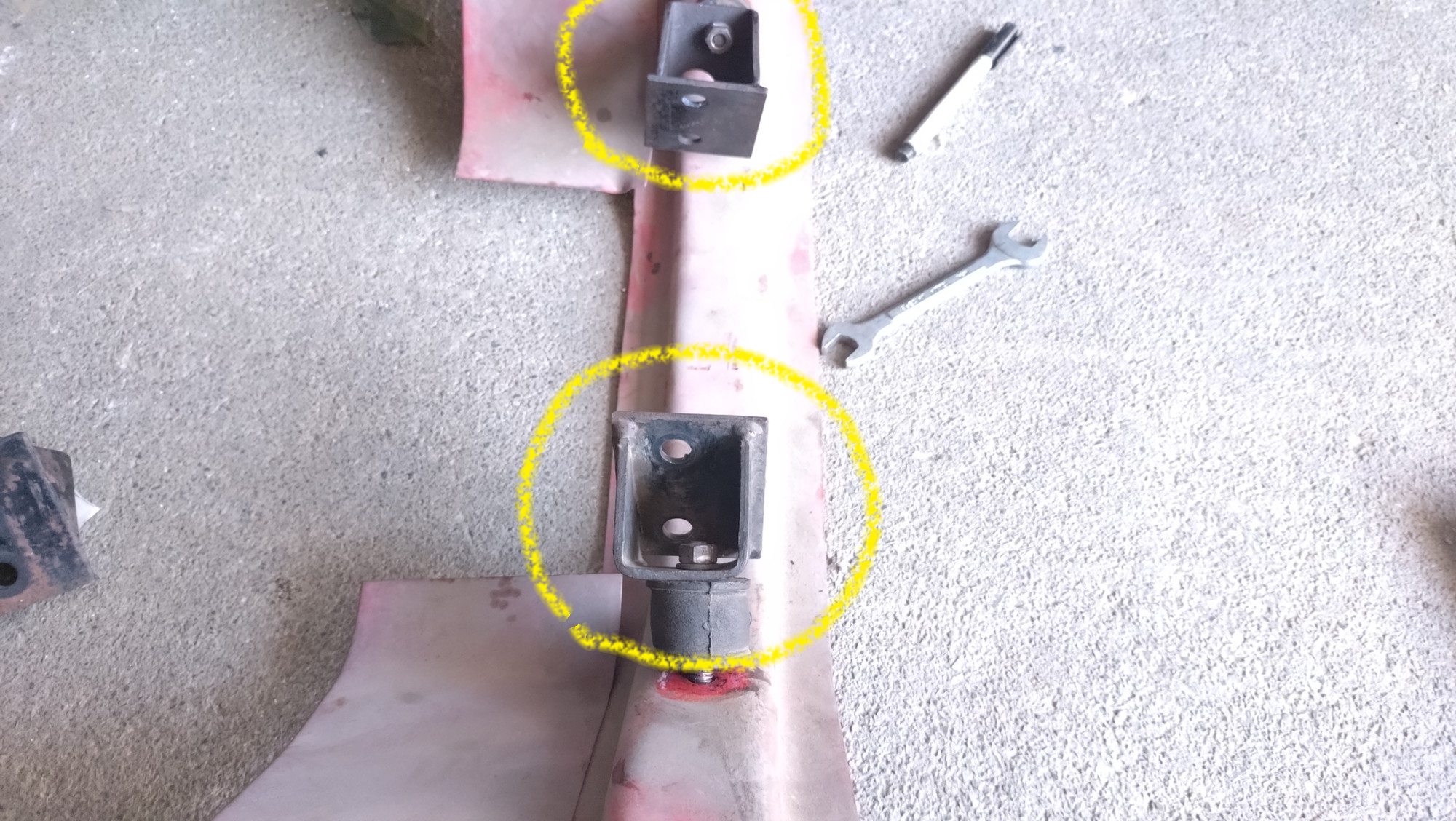 これは間違えた取り付け。インシュレーター取り付け丸穴が前方側にあるので✕。この穴が後ろ側になっている必要があります。つまり反対側に取り付けないといけないのです。