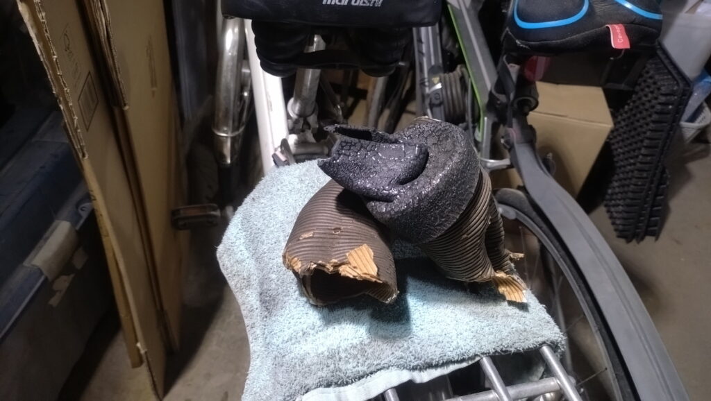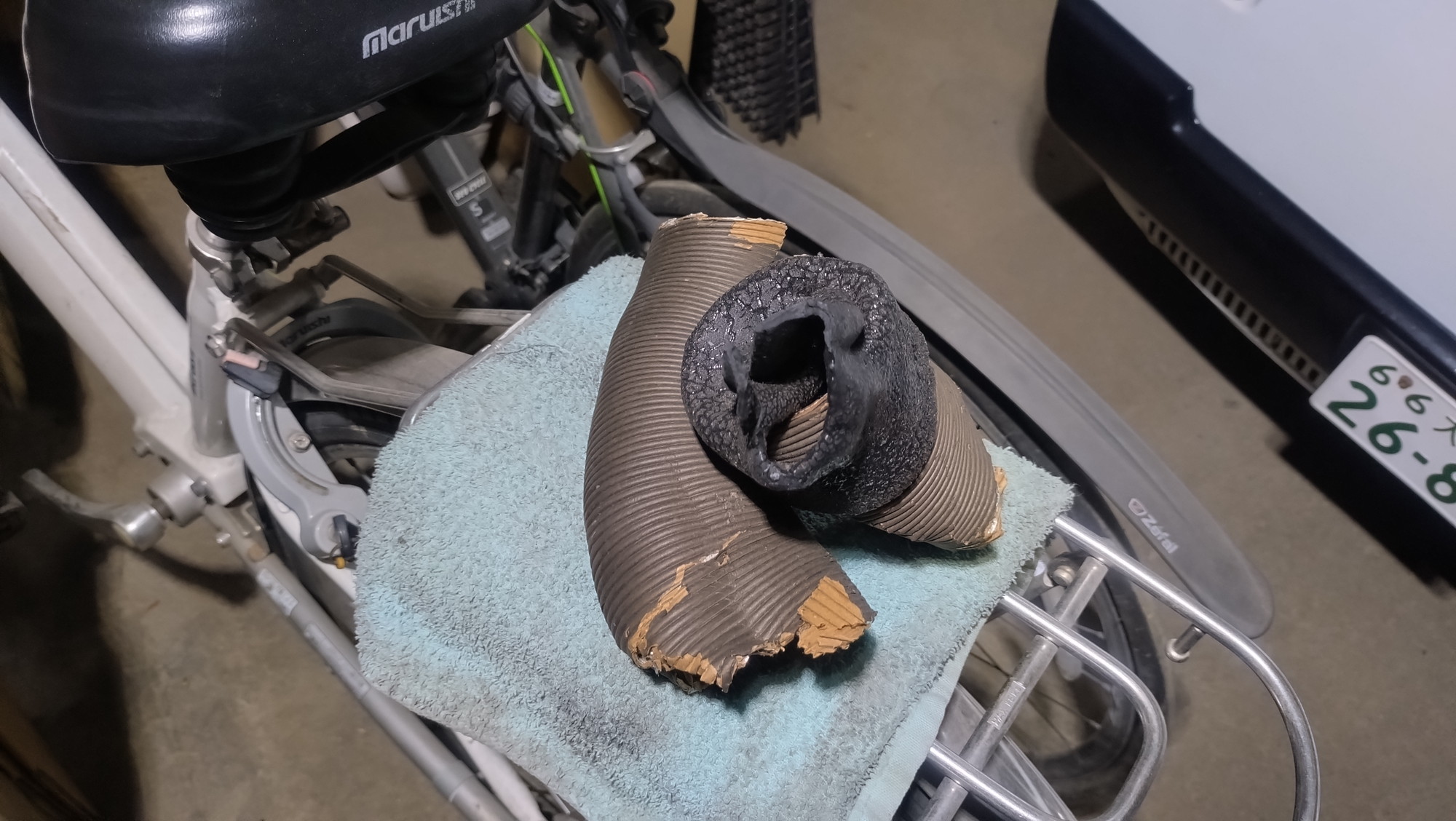 何はともあれバラしてみたら、なんと!紙ダクトの先に繋がる筒状の樹脂が溶けて口を塞いでいるではないですか!!!!!!こうもなるものなの!?