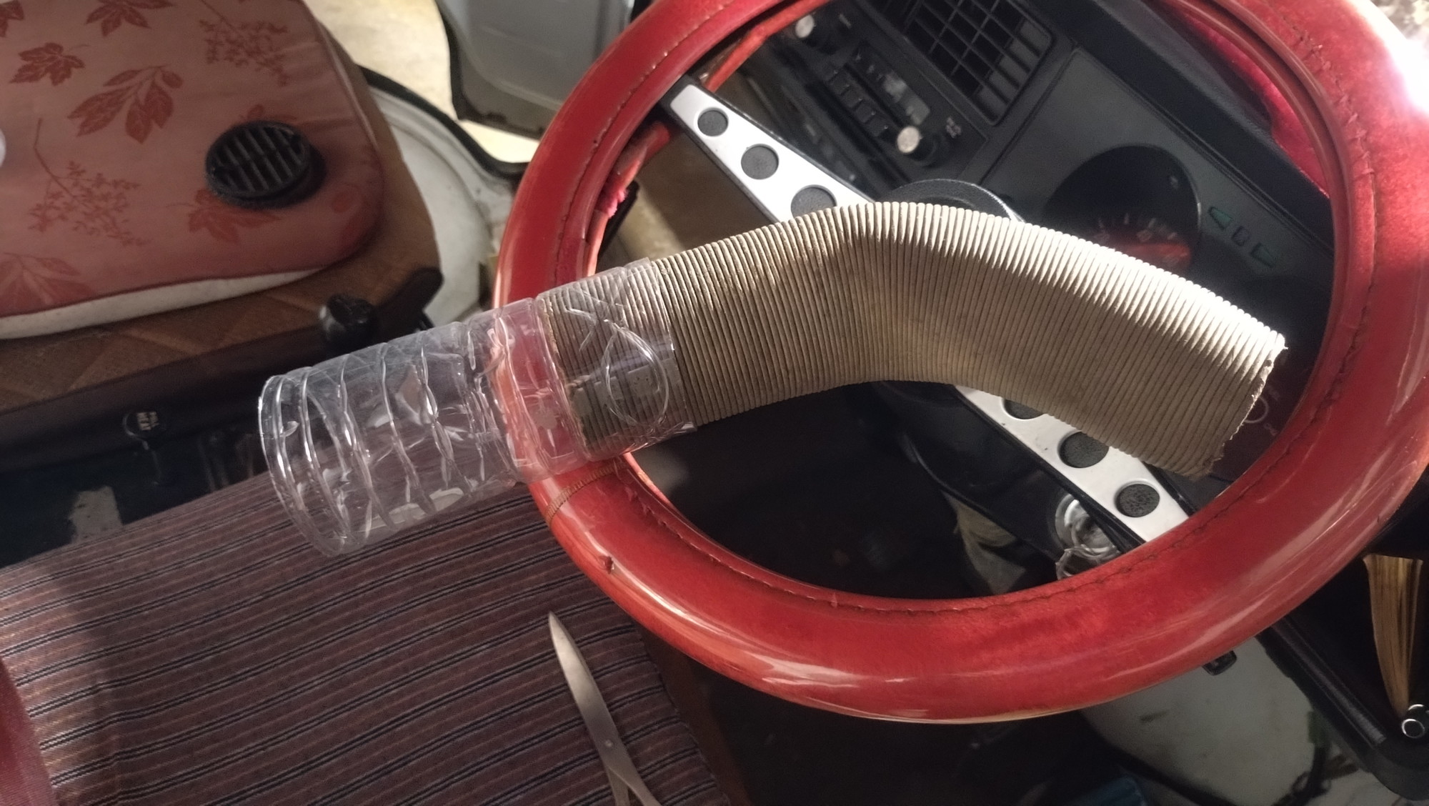 特に難しいことはなく、このように接続。ダッシュボードからペットボトルが飛び出さない長さに調整をしてあげます。