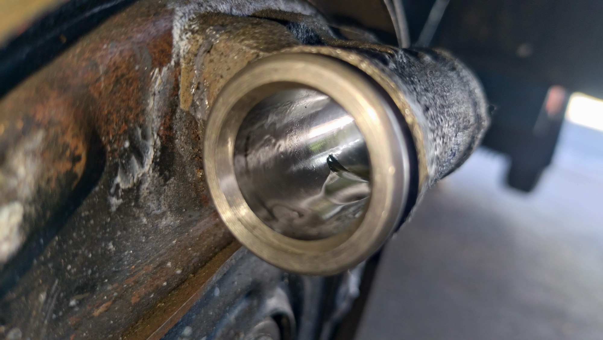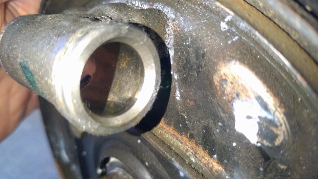 ホイルシリンダの内側の状態。何やらサビのような異物のようなものが見えるのは古いグリス。健康状態は良さそうなので安心!!