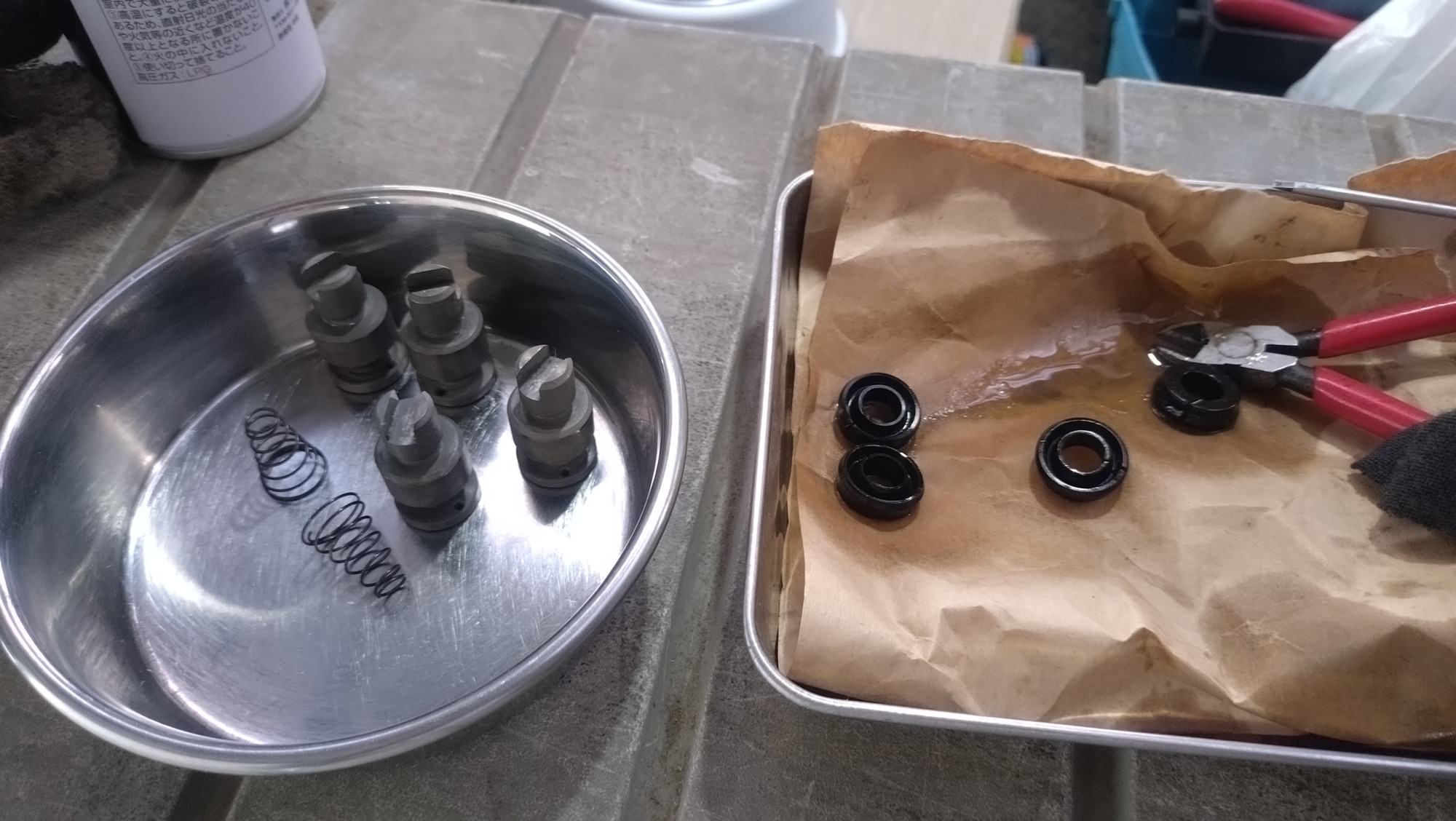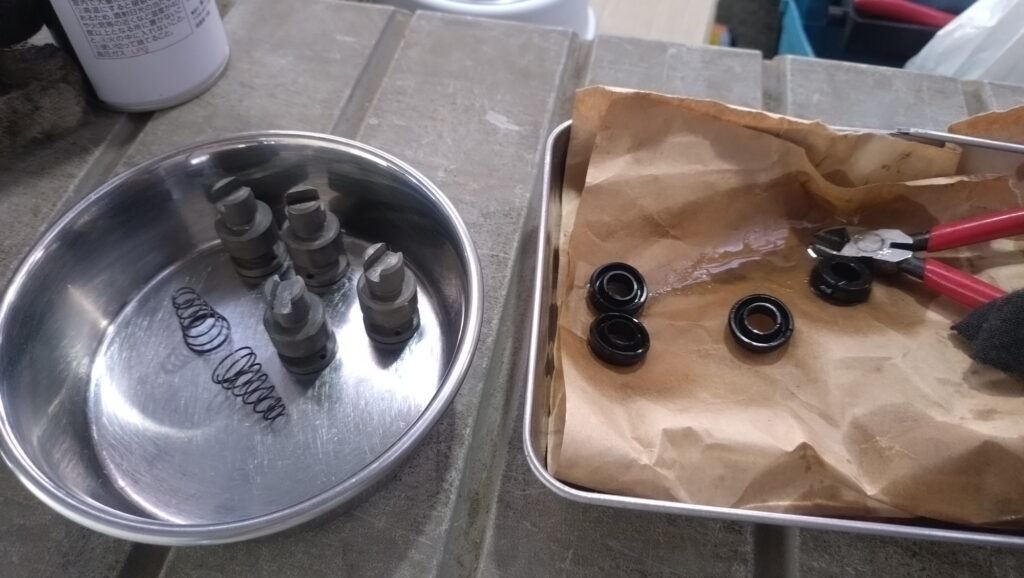 パーツクリーナーで清掃。これを反対側も実施。